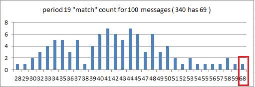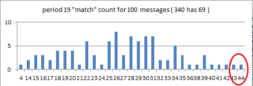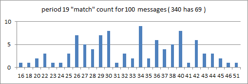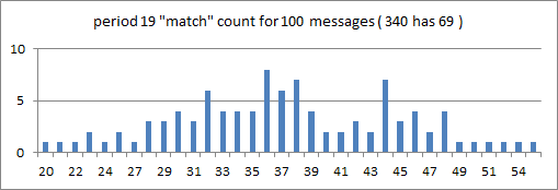 I made 100 messages with the same settings as smokie31, to find out if I could make a message with a comparable count of period 38 matches. And I could. There were a few with counts in the lower 40’s.