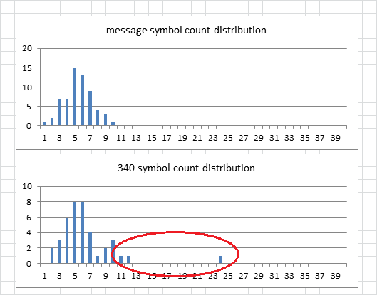 [b]Question: How easy / difficult is it to make a bifid message with a symbol count distribution and period 15/19 repeat stats comparable to the 340?