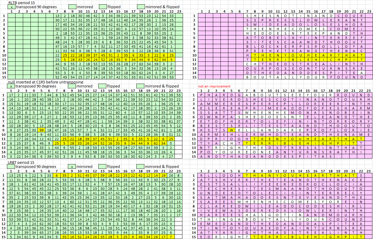 When compared to columnar 3 there is another trigram repeat associated with the last row, it is "=UI", see codebox below that says input versus columnar 3. Possibly, Zodiac copied down 2 vertical trigrams and repeated them horizontally in the last row. Is the same going on with the pivots in the 340?