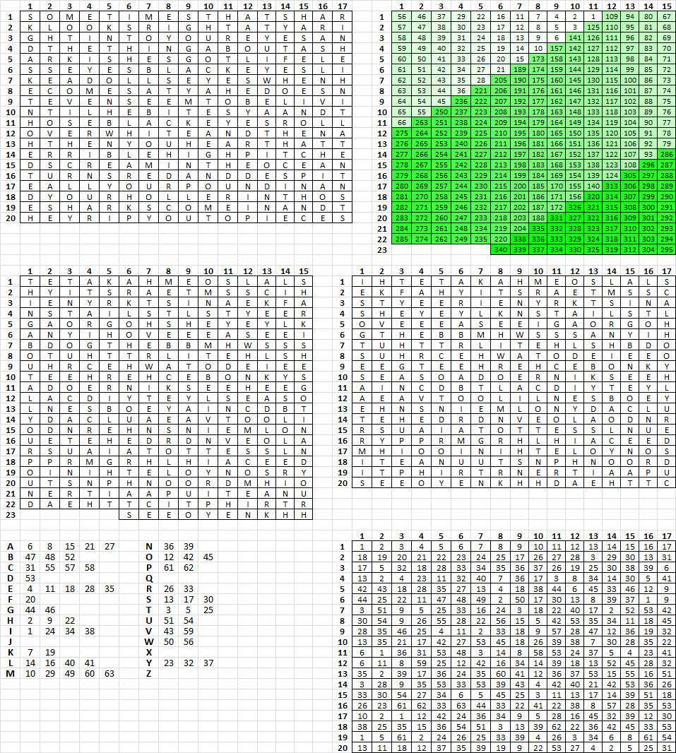 It is the Indianapolis Speech. Sliding an area around with the row solver I found the words, shark, black, white, then you hear that terrible high pit. I didn’t google it, I thought about it all night, knowing that I had heard those words somewhere before. I figured out what it was from memory, then googled it to confirm. I only have a very rough partial solve at this point, I am still trying to figure out what you did because there is a staggered misalignment in the un-transposed message. Not a straight misalignment, but a staggered one. Thanks.