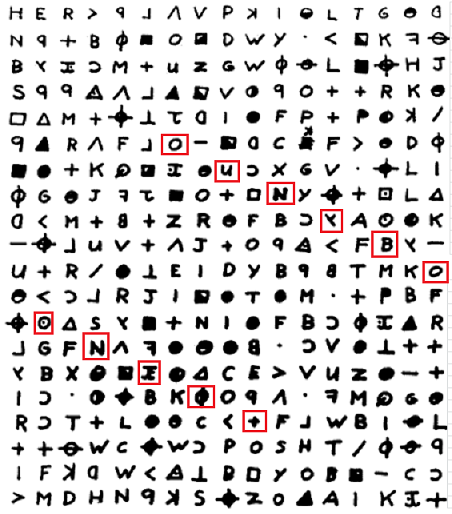 Here are the FLOWERPOWER / GLOWERPOWER symbols with p19 repeats message redrafted into 19 columns. The + and B are in there but not the backwards P. There are only 12 of the B, my symbol 20, so maybe, if a polyphone, maps to only 2 or 3 plaintext. Just an educated guess.