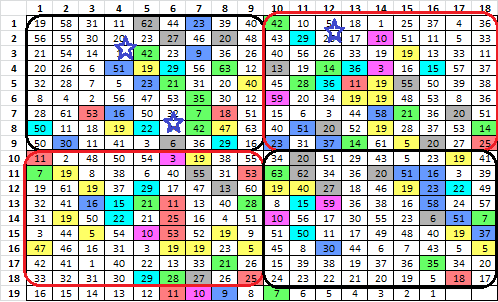 19 25 15 16 13 23 58 41 52 31 42 39 20 24 53 38 40