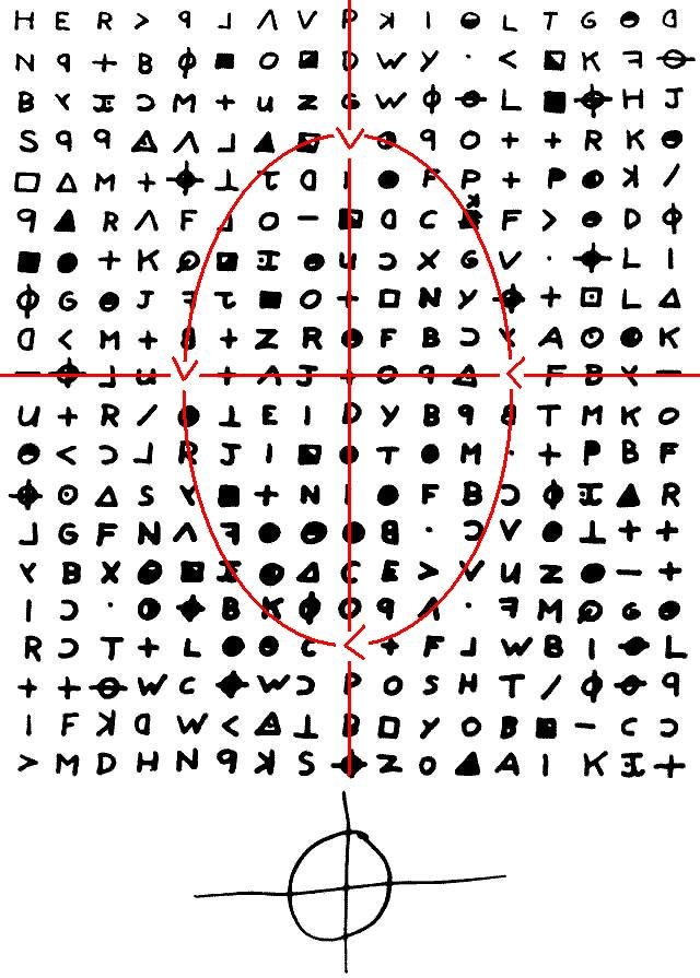 Yes, but I have never seen that particular image before. The 340 is cyclic, meaning that the symbols appear together in groups and cycle with each other, similar to the I LIKE KILLING message, but not quite as cyclic. Jarlve is trying to figure out why, I think, with a computer program that can detect cycle discrepancies. I made some messages for him where the symbols are perfectly cyclic, except for the positions that make a bid circle cross hairs. I just did it for fun to see if he could detect the shape, and he did detect the cross, but not the circle.