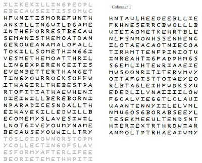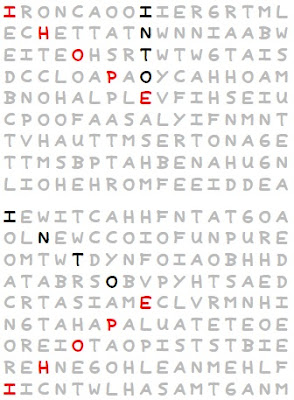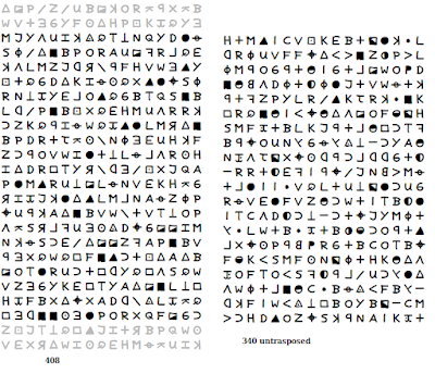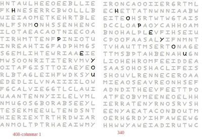 Interesting that in the segments , which would be equivalent in both , side by side , when transposed the segment of the 408 in columns , we have in period 19, HOPE, and YOU of the plain text -Somewhat mirroring the initial Text of the 340.