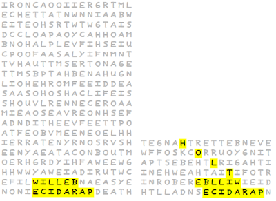 It is curious that the z340 was decoded with these premises, in period 19 diagonally and with mirror words in its last two lines.