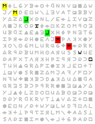 I noticed that, in the z340 decoding, the “black circle” symbol was used as a “wild card” for both the letter K and the letter V, the words “WORV” (WORK) and VNOW (KNOW).