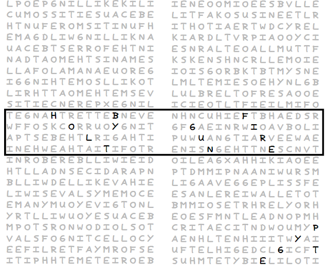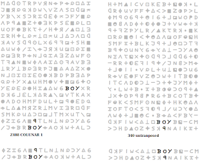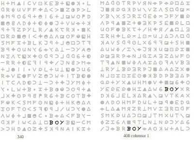When we arrange the segment of 20 lines, it appears, with the symbols “BOY” (twice), which appears at the end of the non-transposed cipher of 340.
