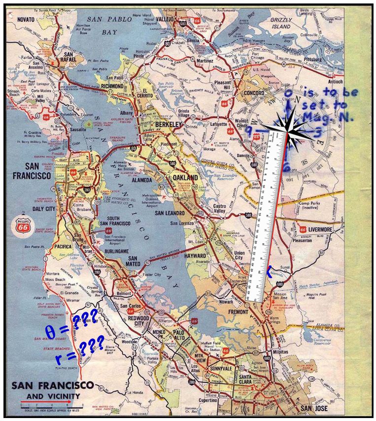 Of course, when it came to the encoding in this latter case, you can’t ‘encode’ a physical map. So, what you do is you take the coordinates (bearing, range) of the marked location of your device and you encode that. Again, the process of obtaining the coordinates is nothing more complicated than an act of measurement, so: