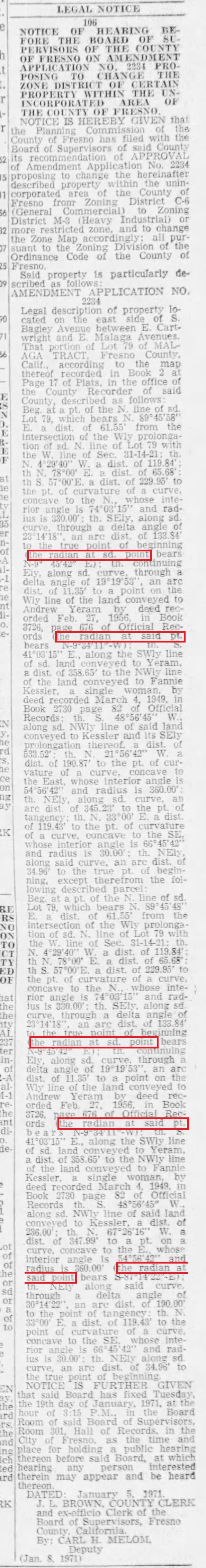 … and I have others from 1969/1970, but I could only ever find this specific usage in Fresno and in the typesetting for this paper. It’s not a common usage in land surveying generally – most other examples use “radial line” – which made me think for a while that maybe The Zodiac was the typesetter working at The Fresno Bee. 😉