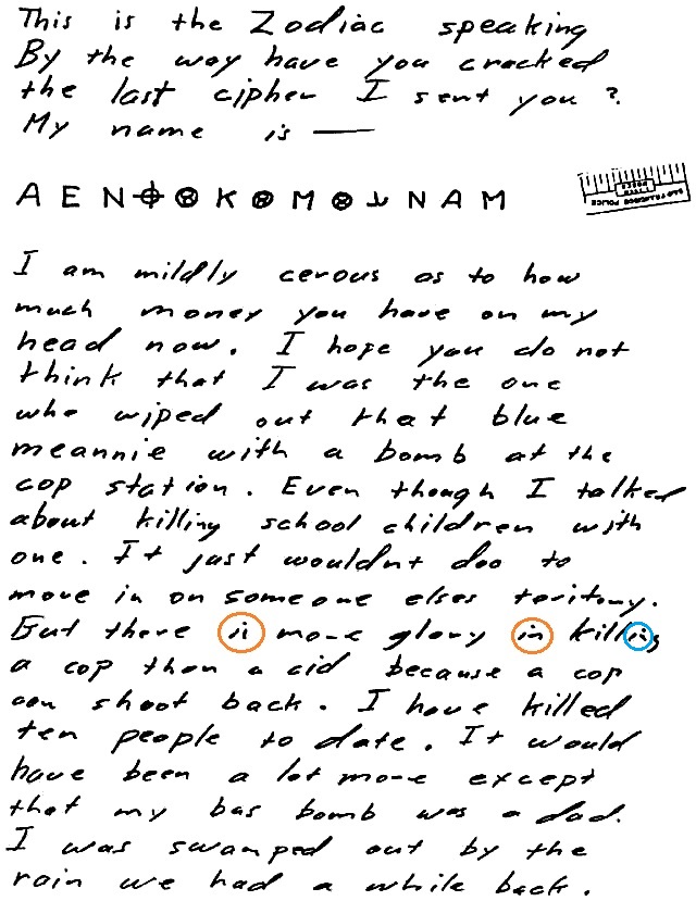 Also note the letters become more and more slanted as it goes along, in obvious intention to hide the handwriting style I think.